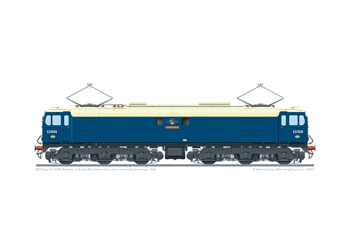 {"id":15546144883066,"title":"Class 77 EM2 27006 'Pandora'","handle":"class-77-em2-27006-pandora","description":"\u003cp\u003eA highly-detailed A3 art print of British Rail EM2 Class 77 electric locomotive 27006 'Pandora' in B.R. 'electric blue' livery with small yellow nose end warning panels. Named after the figure in Greek mythology, the name Pandora is currently used on DRS Class 88 bi-mode loco \u003ca href=\"https:\/\/www.wwrgallery.co.uk\/collections\/trains-electric\/products\/class-88-88004-pandora-direct-rail-services\"\u003e88004\u003c\/a\u003e.\u003c\/p\u003e","published_at":"2025-12-10T13:38:20+00:00","created_at":"2025-12-10T13:38:18+00:00","vendor":"WWR Gallery","type":"Class 77 EM2","tags":["A3 art print","A3 print","A3 profile","A3 profile print","A3 train print","locomotive artwork","Locomotive illustration","Locomotive print","Locomotive profile","Train art","train illustration","train print","train profile","Type_Class 77 EM2"],"price":1499,"price_min":1499,"price_max":1499,"available":true,"price_varies":false,"compare_at_price":null,"compare_at_price_min":0,"compare_at_price_max":0,"compare_at_price_varies":false,"variants":[{"id":56288947437946,"title":"Default Title","option1":"Default Title","option2":null,"option3":null,"sku":"TN924","requires_shipping":true,"taxable":true,"featured_image":null,"available":true,"name":"Class 77 EM2 27006 'Pandora'","public_title":null,"options":["Default Title"],"price":1499,"weight":250,"compare_at_price":null,"inventory_management":null,"barcode":"","requires_selling_plan":false,"selling_plan_allocations":[]}],"images":["\/\/www.wwrgallery.co.uk\/cdn\/shop\/files\/TN924-77-27006-Pandora-elecblue-1967.jpg?v=1765373809"],"featured_image":"\/\/www.wwrgallery.co.uk\/cdn\/shop\/files\/TN924-77-27006-Pandora-elecblue-1967.jpg?v=1765373809","options":["Title"],"media":[{"alt":"Class 77 EM2 27006 'Pandora'","id":69109133836666,"position":1,"preview_image":{"aspect_ratio":1.415,"height":501,"width":709,"src":"\/\/www.wwrgallery.co.uk\/cdn\/shop\/files\/TN924-77-27006-Pandora-elecblue-1967.jpg?v=1765373809"},"aspect_ratio":1.415,"height":501,"media_type":"image","src":"\/\/www.wwrgallery.co.uk\/cdn\/shop\/files\/TN924-77-27006-Pandora-elecblue-1967.jpg?v=1765373809","width":709}],"requires_selling_plan":false,"selling_plan_groups":[],"content":"\u003cp\u003eA highly-detailed A3 art print of British Rail EM2 Class 77 electric locomotive 27006 'Pandora' in B.R. 'electric blue' livery with small yellow nose end warning panels. Named after the figure in Greek mythology, the name Pandora is currently used on DRS Class 88 bi-mode loco \u003ca href=\"https:\/\/www.wwrgallery.co.uk\/collections\/trains-electric\/products\/class-88-88004-pandora-direct-rail-services\"\u003e88004\u003c\/a\u003e.\u003c\/p\u003e"}